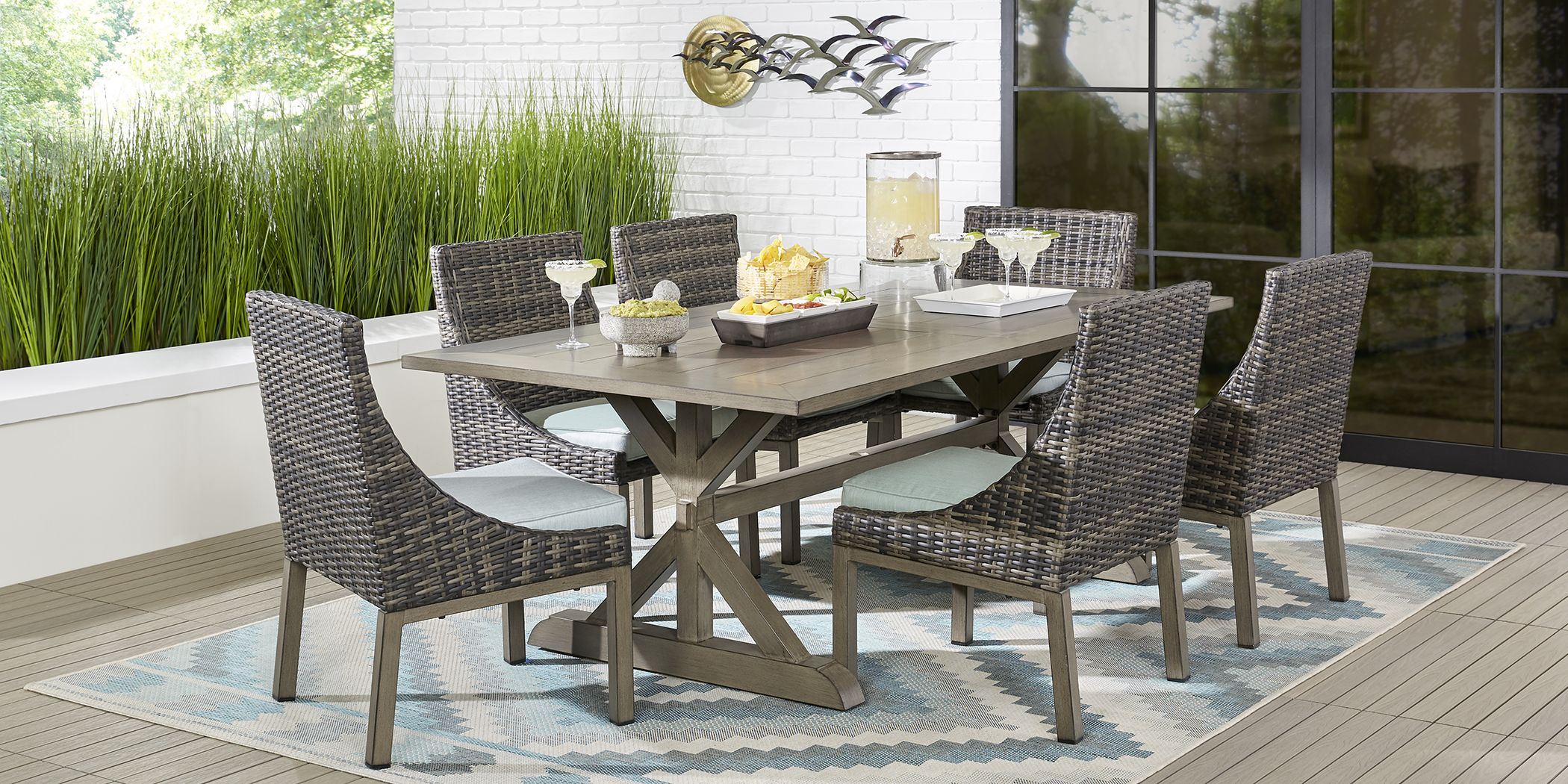 Our supremely comfortable santino dining collection is designed to withstand searing sun and harsh weather season after season. This wicker dining table is a great way to have a table on hand when you are hosting without having to take up extra space in your back yard. 99 list list price $1077.98 $ 1,077. Lounge in ultimate comfort and style with cushioned daybeds. Rectangles.60 x 36 and 96 x 44.